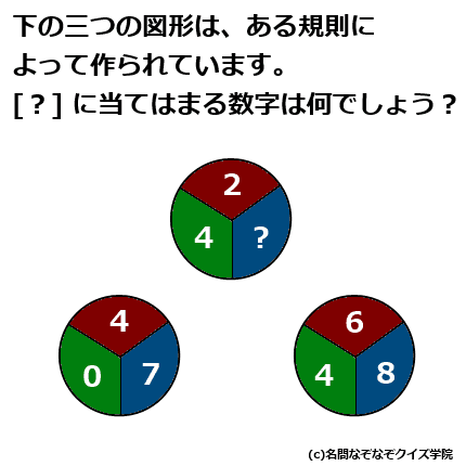 (?)の部分を同じように考えると、「8ー?=7」より「?=1」となり、これが答えとなります