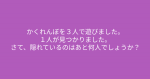 ※単純に「3引く1」をすると間違ってしまう問題です。かくれんぼは全員で隠れるのではなく、1人が鬼になることに気づけるかどうかが解答のポイントです。