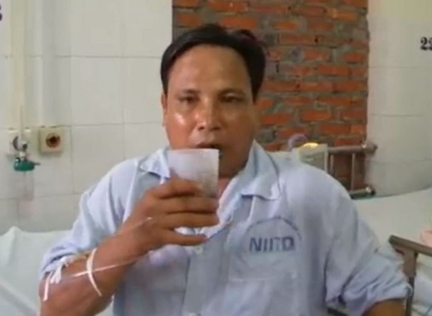 実際にこの病気にかかると、感覚麻痺、高熱、嘔吐、けいれんなどの症状を起こすが、その中でも最も確実な症状は「水恐怖症」。水恐怖症はウイルスが中枢神経を侵し、食べ物を飲み込む筋肉に、痛み性けいれんが生じて発症するといいます。映像の中の男性は水カップを手に、不安で怖そうな姿を見せています。コップを口に当てると、全身がぶるぶる震え、極度の恐怖を感じ始めたのでした。