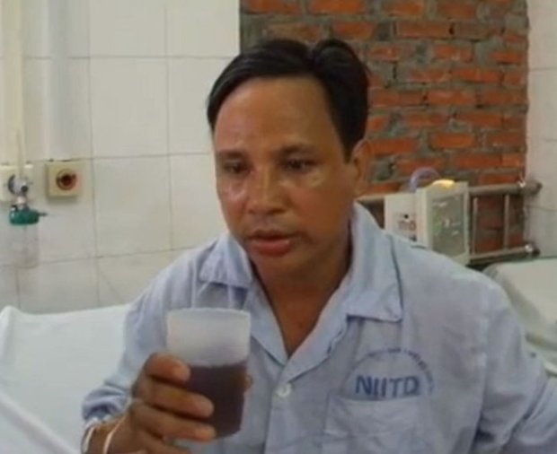 普段なら水を飲むのは難しいことではないですが、男性は渾身の力で無理やり水を飲む不自然な姿を見せたのでした。手が震えてコップの水が外にあふれ、男性は自分の症状に困惑した様子を見せたました。水を口に入れても飲み込めず、体中を苦しそうに動かしました。