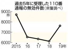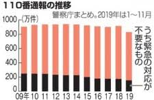 昨年1~11月に全国の警察が受理した110番通報のうち緊急性のないものは152万4542件(同7万9179件減)で、全体の18.4%にもなりました。