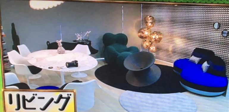 新居に足を踏み入れた番組スタッフは、「うわ!なんですかこのお部屋!」とそのゴージャスさに圧倒。本当にマンションなのかと疑うほどの豪華な内装。3LDKの間取りで、珍しい形の椅子や、プロジェクター付きの照明、85万円のオブジェ風の間接照明など、高級ホテルの一室のようなインテリアが…