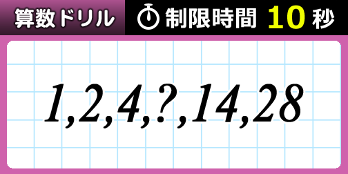 「1,2,4,?,14,28」あるルールで数字が並んでいます。『?』に入るのはいくつでしょうか? 今回ご紹介するのは脳トレクイズです。本日は算数問題に挑戦! Google Google ADVERTISEMENT あなたはわかりましたか? それでは答え合わせに行きましょう! Google 答えは、、、 「7」。 ADVERTISEMENT Google あなたは間違えずに解けたでしょうか! Google [著作権者VONVON /無断コピー、無断転載および再配布禁止(違反時の法的措置)] ADVERTISEMENT