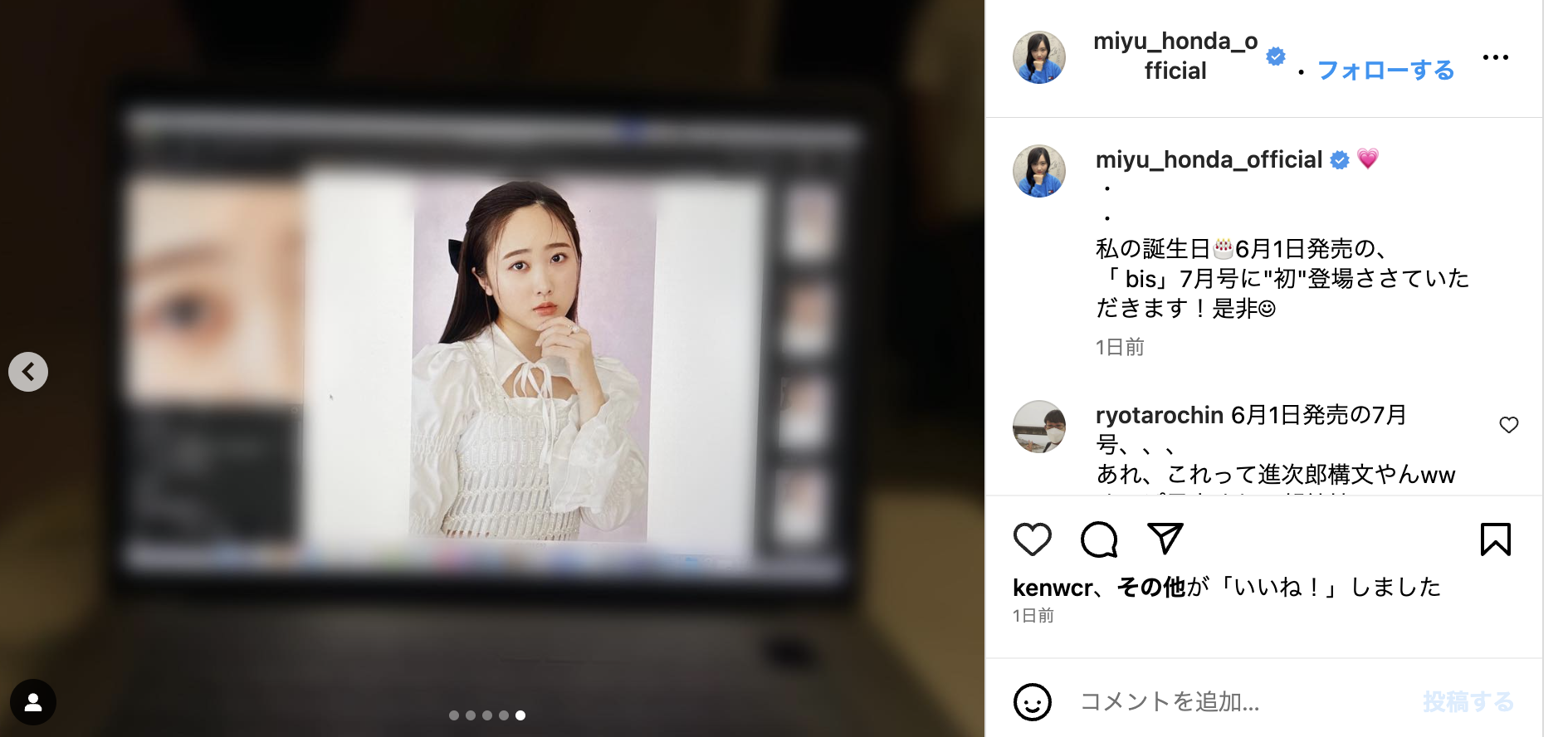 本田は6月1日に19歳の誕生日を迎えました。