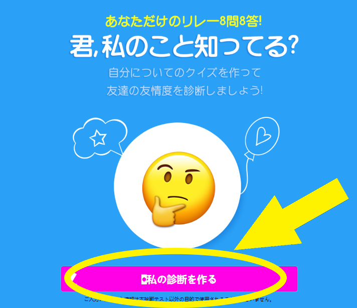 自分についてのクイズを作って、友達があなたのことについてどれぐらい知っているか診断できるサービスです。