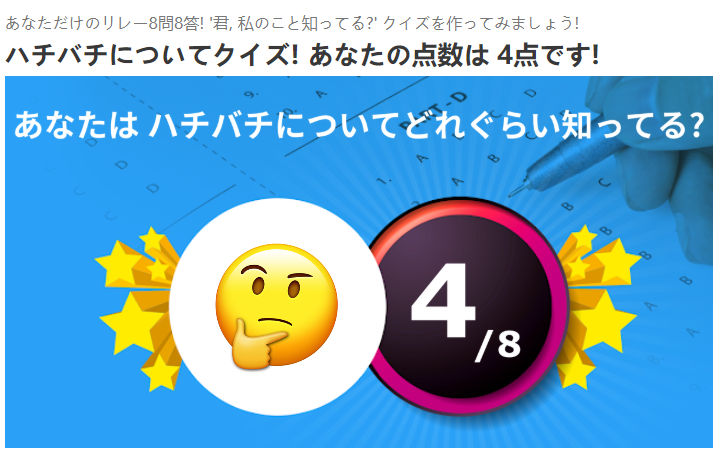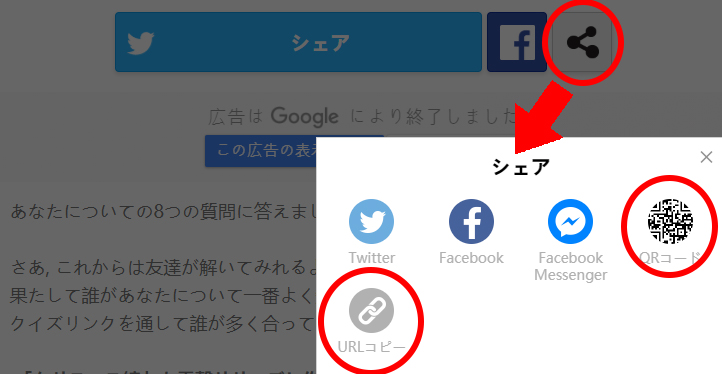 このように完成されたあなたのクイズをTwitterやFacebook、もしくはLINEの友達にシェアしてみましょう!