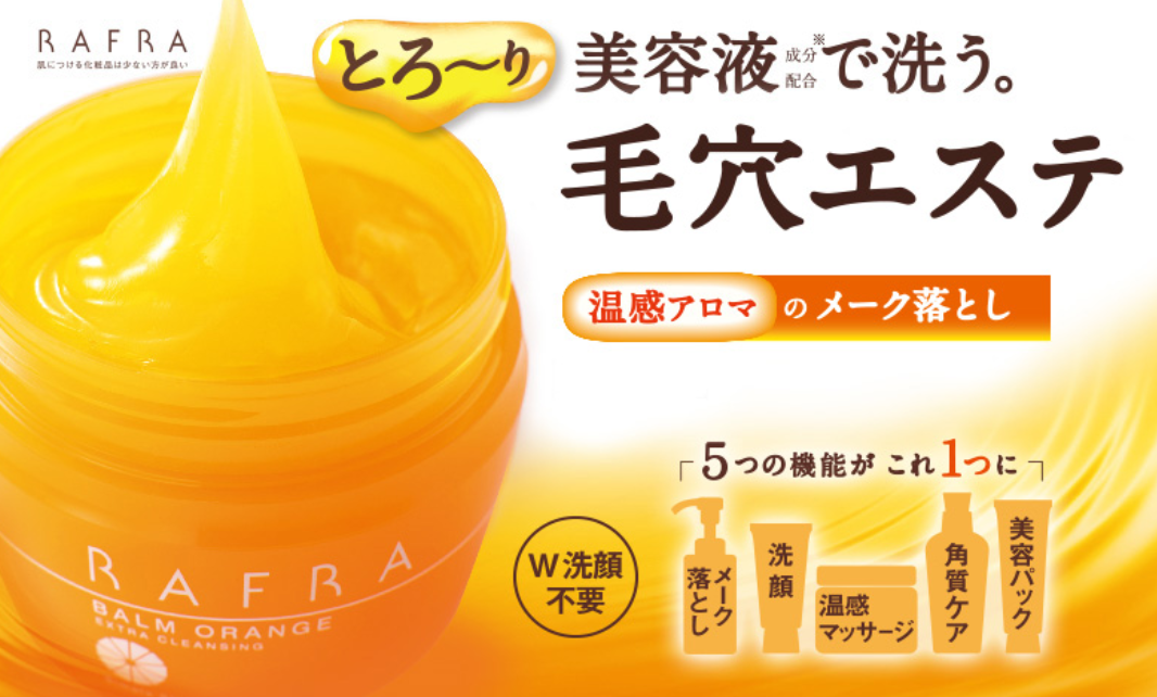 最近はクレンジングに対する知識も豊富になってきて、突っ張るまで洗ったり、ゴシゴシと手で顔を洗う人も随分少なくなってきました。しかし、クレンジングに徹底的にこだわる人はまだ多数派ではありません。ラフラのバームオレンジは、肌に直接触れずに油分の汚れを落とせるクレンジングで、モンドセレクション賞も受賞しています。香りも柑橘系のいい香りです。シャンプーなどでも忌避されるようになった界面活性剤や、着色料保存料は使用されていません。スキンケア商品のサイクルは早いですが、なんと14年も継続販売しています。