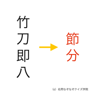 “左の文字を組み合わせて、二字熟語を、、、” 30秒以内で作ってみましょう 今回ご紹介するのは脳トレクイズです。 問題 左の文字を組み合わせて、二字熟語を作ってください。 google ADVERTISEMENT Google あなたはわかりましたか? それでは答え合わせに行きましょう! Google 答えは、、、「節分」 ADVERTISEMENT google ADVERTISEMENT Google あなたは間違えずに解けたでしょうか! Google [著作権者VONVON /無断コピー、無断転載および再配布禁止(違反時の法的措置) ADVERTISEMENT