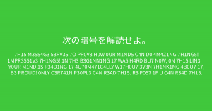 ある一部の人だけが、これを読むことができるのです。もしあなたが解読できたなら、この問題を他の人にも回して下さい。