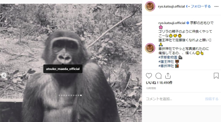しまいには、ラストのゴリラの写真に「atsuko_maeda_official」と、前田さんの名前をタグ付けするというオチwwwwwwww