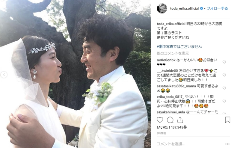 去る 1月31日に 俳優のムロツヨシさんが Instagramのライブ配信を行なった際、なんとドラマ 「大恋愛〜僕を忘れる君と」で共演した 女優の戸田恵梨香さんがコメント欄に飛び入りで登場!