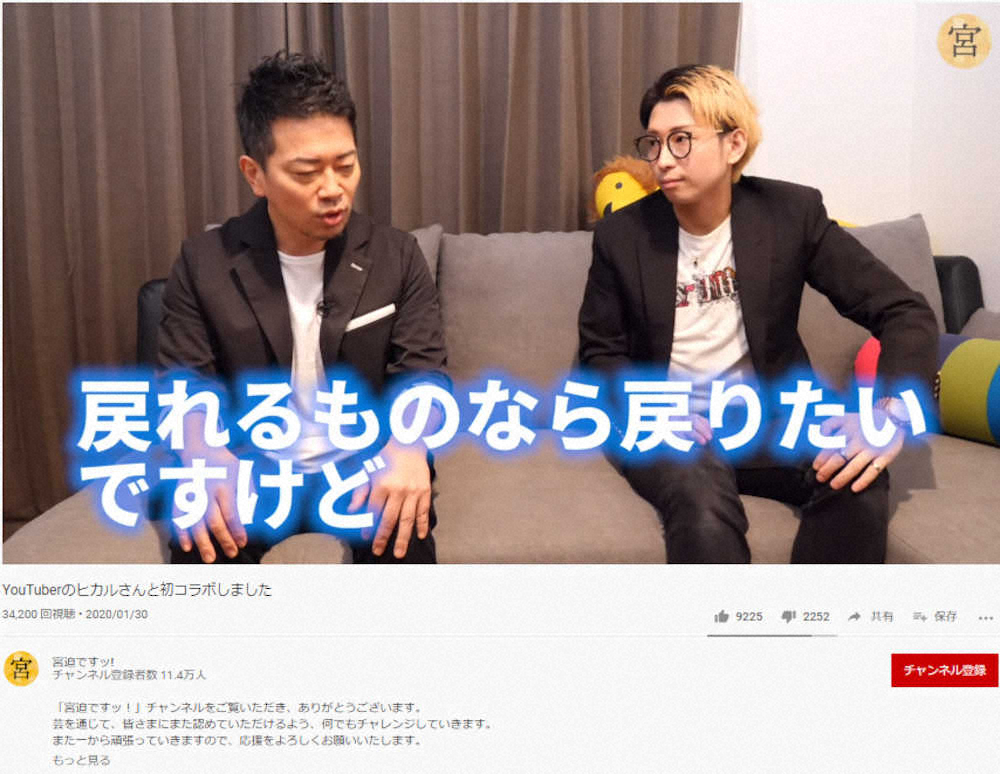 ダウンタウンの松本人志(56)さんが2月2日放送のフジテレビ系「ワイドナショー」で、雨上がり決死隊・宮迫博之(49)さんのYouTuberデビューについて言及しました。