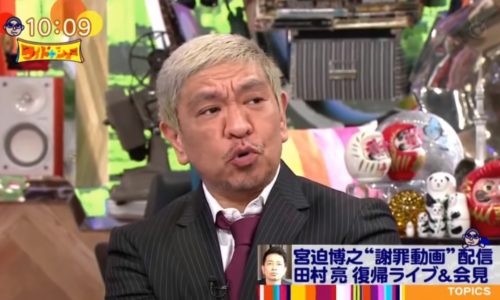 1月29日に宮迫博之さんがYouTuberデビューし、謝罪動画を公開したことについて、松本人志さんは「『ちょっとどうなの?』とは久しぶりに言いましたよ。」と告白しました。