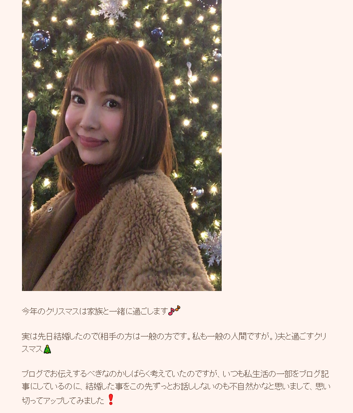 「今年のクリスマスは家族と一緒に過ごします 実は先日結婚したので(相手の方は一般の方です。私も一般の人間ですが。)夫と過ごすクリスマス」