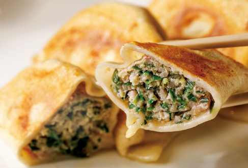 “三種の餃子”はドラマの中で、木村さん演じる尾花夏樹たちが食フェスのために考案したメニュー。牛の胃袋(ミノ)、イカと大葉、車海老とニラ、それぞれ異なるタネを包んだ餃子に、ほうれん草の青寄せとマスタードを混ぜ合わせた“フレンチマスタード”をかけた独創的な餃子です!
