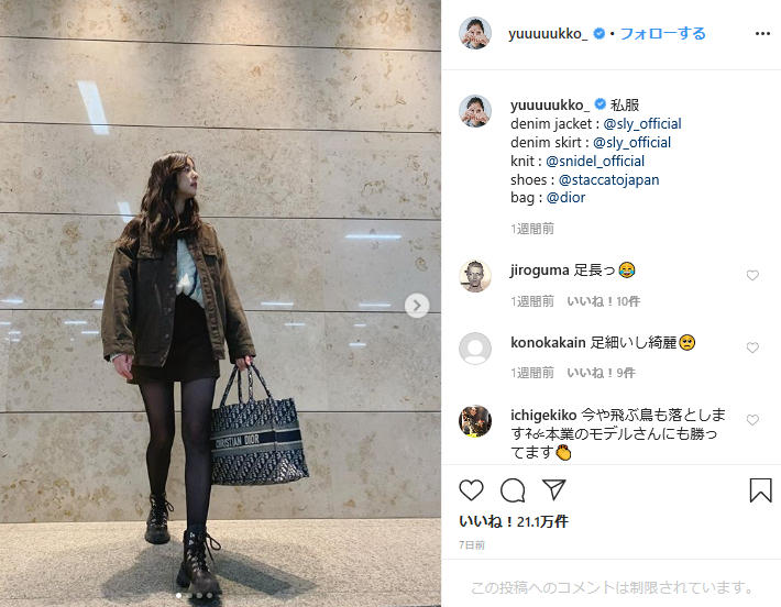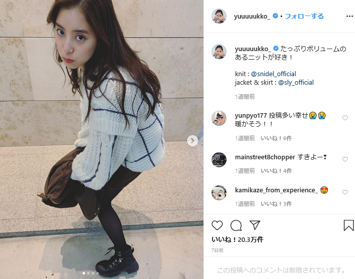去る2020年2月20日に モデルで女優の新木優子(あらきゆうこ)さんが、自身のインスタグラムを更新。美脚が際立つミニスカートの私服姿を披露し、ファンの間で反響を呼んでいます。