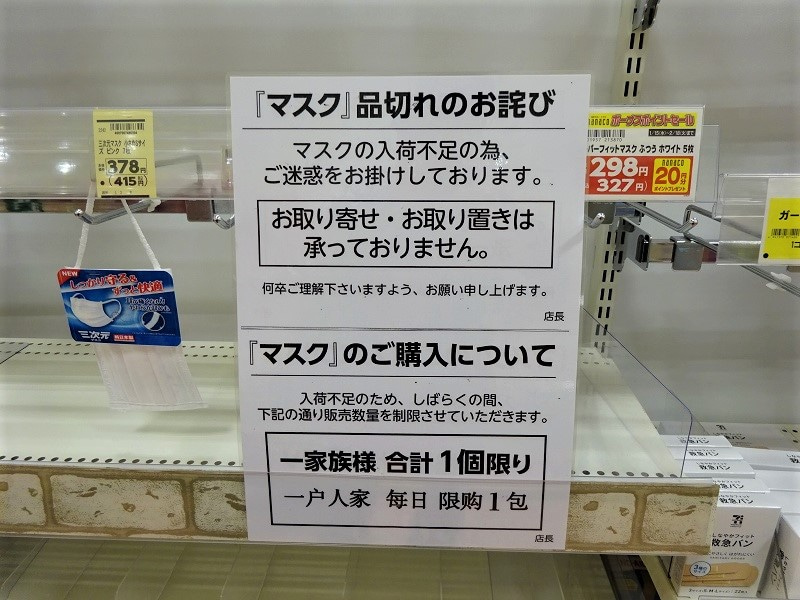 対応の遅れで批判が殺到している日本政府ですが、そんな日本政府すら先日、全国の公立小中学校に臨時休校を要請するなど、その深刻さが日に日に増しています。そこで最も簡単に誰もができる予防の一つが「マスク」を着用することですが、そのマスクが街から消えています。