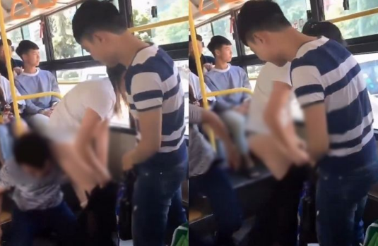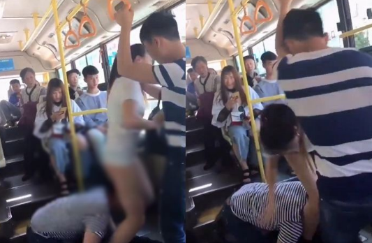 それは中国での出来事。とあるバスの車内でウトウトしている男がブレーキがかかった瞬間に転倒。目の前にいた女性に突進しスカートをズリ下ろすといった行為に及びました。これには女性もビックリ。