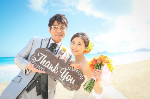 お二人は、米国ハワイのフォーシーズンズ・リゾート・オアフ・アット・コオリナで挙式しました。