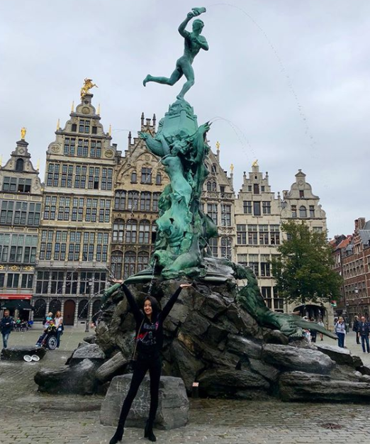ベルギー・アントウェルペンの旧市街地内に位置する広場「グローテ・マルクト」にてポーズをとるKoki。