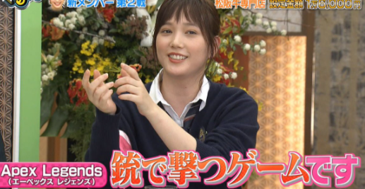 また今年1月放送の『ぐるぐるナインティナイン』(日本テレビ系)に出演した際には、オンラインFPSゲーム『Apex Legends(エーペックス レジェンズ)』にハマっていることを告白。