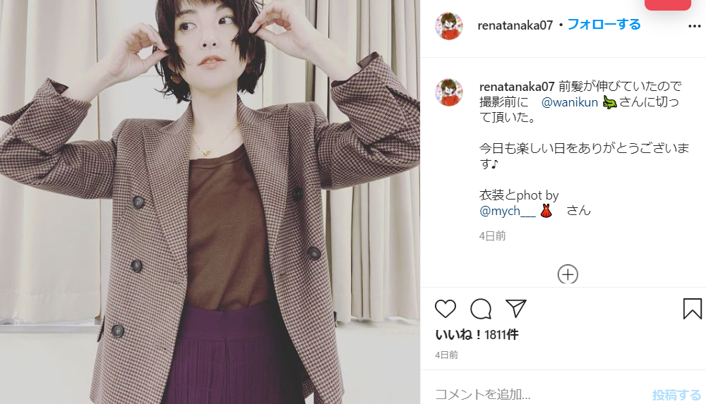 そんな田中さんはこの日、インスタグラムに《前髪が伸びていたので 撮影前に》《今日も楽しい日をありがとうございます》とつづり、美容師に髪を切ってもらったと報告。