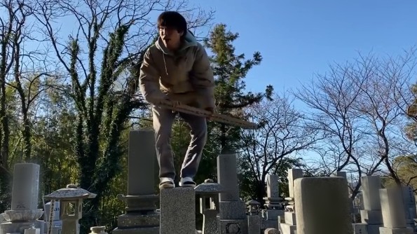 川西容疑者は12月1日、人様の墓石の上に乗っては手に持った卒塔婆を振り回しながら奇声を発し、「死んで当然じゃお前ら!生き返りてぇか!」「生き返り生き返り!ベホイミベホイミ!」などといった意味不明な発言をしたことで礼拝所不敬罪の疑いで逮捕。