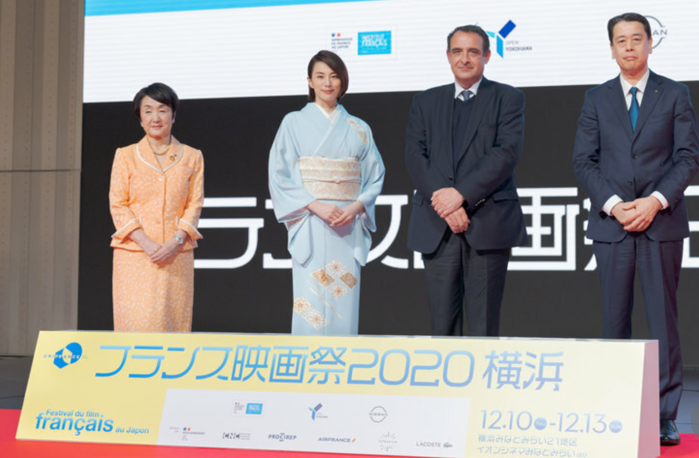 映画祭では、みなとみならい21地区を中心に最新のフランス映画などを上映。イベントには、フェスティバルミューズの米倉涼子、横浜市長の林文子氏、駐日フランス大使のフィリップ・セトン氏、日産自動車の内田誠代表執行役社長兼最高経営責任者が登壇し、あいさつを行った。