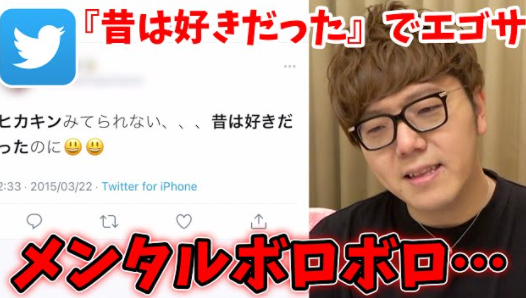 「じわじわくるんだ、これが」「死ね、ゴミ、カスって言われるよりかは『ヒカキンさん昔は大好きだったんだけど、今は大嫌い』って言われるのがもう…」と、ヒカキンは辛そうに語っていました。