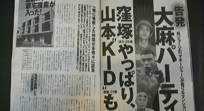彼も所ジョージ関連の大麻パーティーに参加していたとみられています。薬物使用が噂されている一方で、山本“KID”徳郁は既に警察から家宅捜索を受けており、その際に薬物(覚醒剤)は発見されなかったという情報も週刊誌で報道されています。