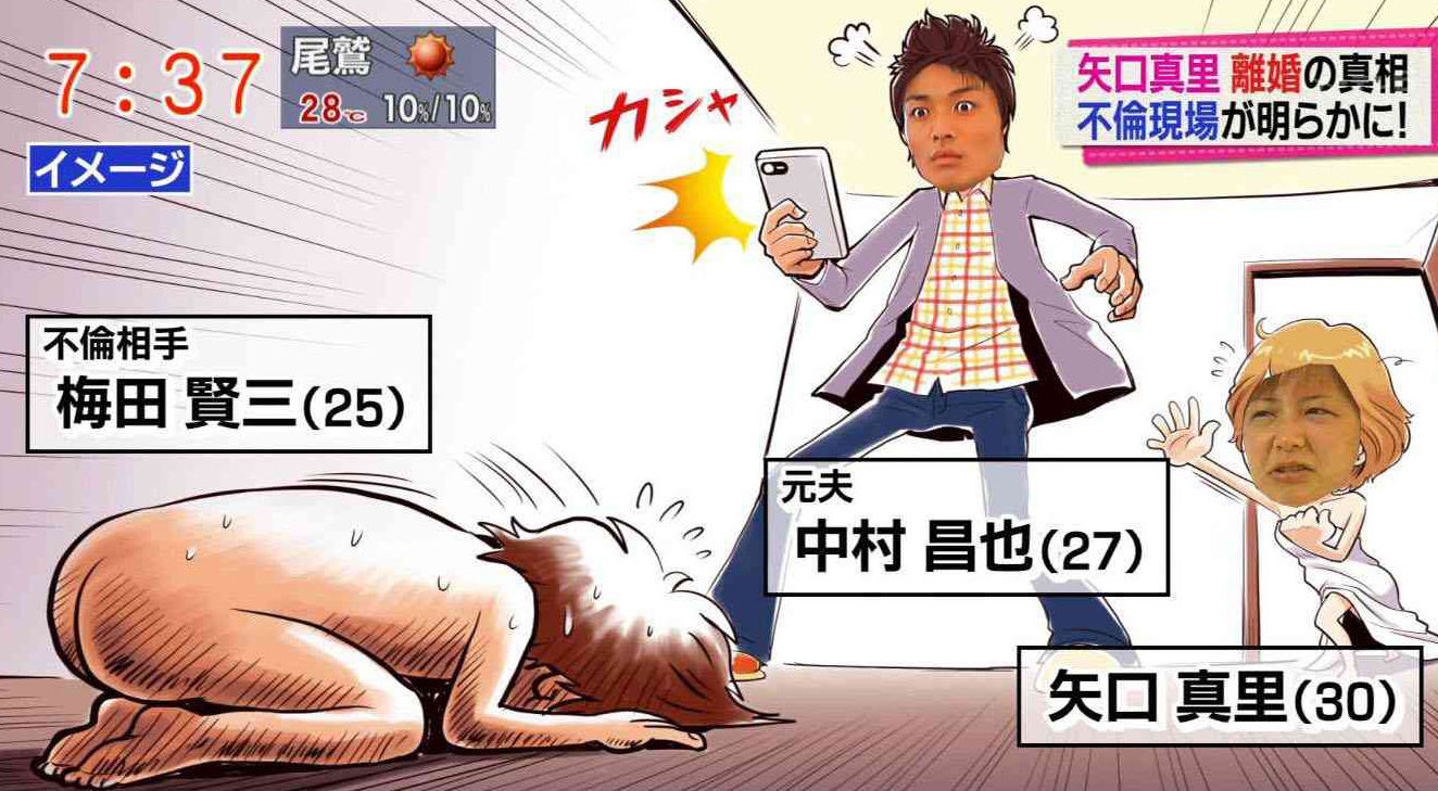 矢口さんで思い出されるのは、俳優の中村昌也さんとの婚姻中、現在の夫である梅田賢三さんを自宅寝室に連れ込み不倫したことで有名です。