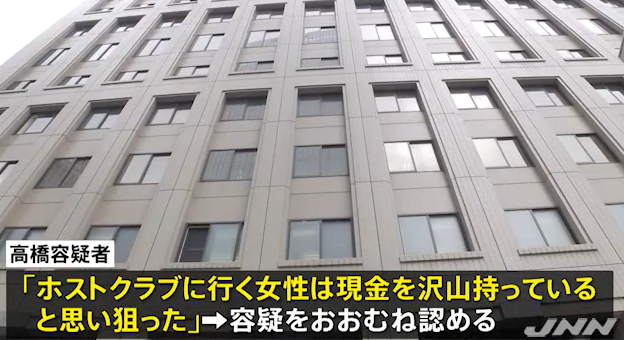 逮捕された男は、千葉県流山市の会社員・高橋秀彰容疑者(47)で、警察の調べに対して「手品のように紙袋で視覚を奪って財布を盗んだが、強盗ではない」「ホストクラブに行く女性は現金を沢山持っていると思い狙った」と供述し、容疑を認めています。高橋容疑者は去年11月にも、歌舞伎町のビルで女性から財布を盗んだとして逮捕・起訴されていました。
