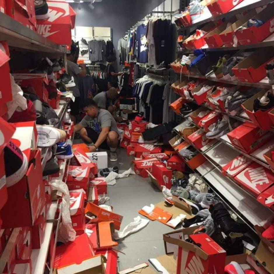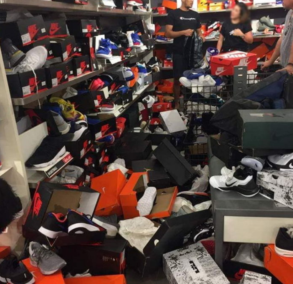 過去オンラインメディアのグッド・タイムズより、セールを開いたナイキ店に訪問した客の嵐が過ぎ去った後の凄惨な状況を写真と一緒に紹介しました。