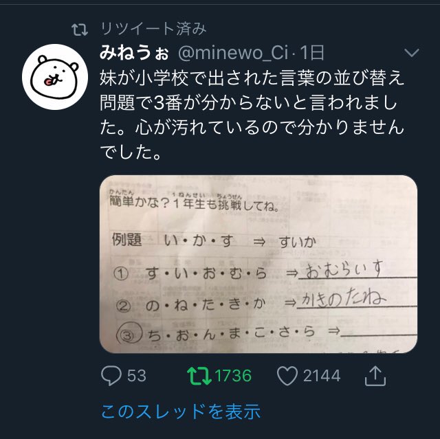 この問題は投稿者の妹が、小学校で解いたという並び替えクイズの一部です。