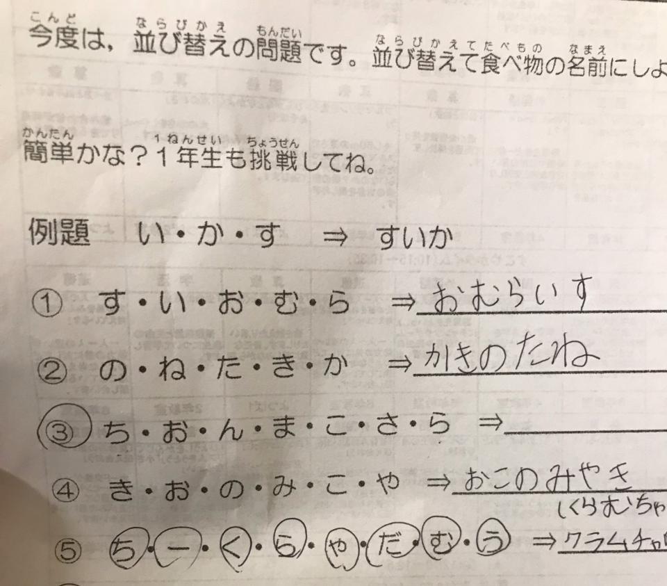 しかし3問目の「ち・お・ん・ま・こ・さ・ら」の問題だけ、並び替えができなかったと言います。