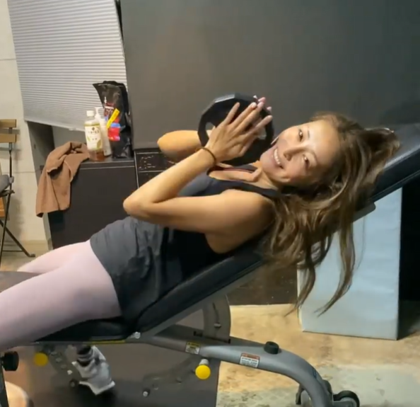 この日はトレーニングを行った熊切さん。胸の運動に取り組む様子です。