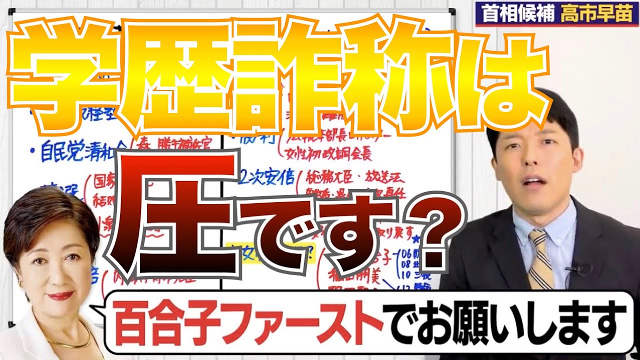 わずか数時間で消されたと話題になっていた「【小池百合子(1)】東京都知事の謎多き半生に迫る!東京の救世主か?権力の頂点を目指す女帝か?」というタイトルでアップされていた動画。ノンフィクション作家の石井妙子氏の著書「女帝 小池百合子」の内容を紹介しつつ、小池都知事の経歴詐称疑惑に踏み込んだ内容となっていました。