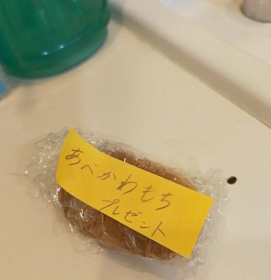 その物とは、ラップに包まれており、「あべかわもち プレゼント」と書かれた付箋がつけられています。最初の投稿は午前中でしたが、午後1時43分にストーリーズで再び投稿した常盤さんは、「まだある…」とずっと気になっている様子を見せていました。しかし、午後7時過ぎにはなくなっていたことを報告しています。