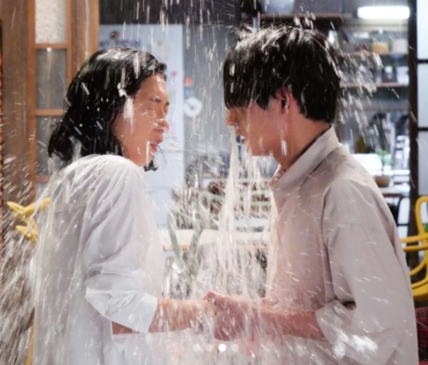 インスタグラムでは江口と赤楚が雨漏りした水を頭からかぶってしまうシーンのメイキング写真を数点投稿し、