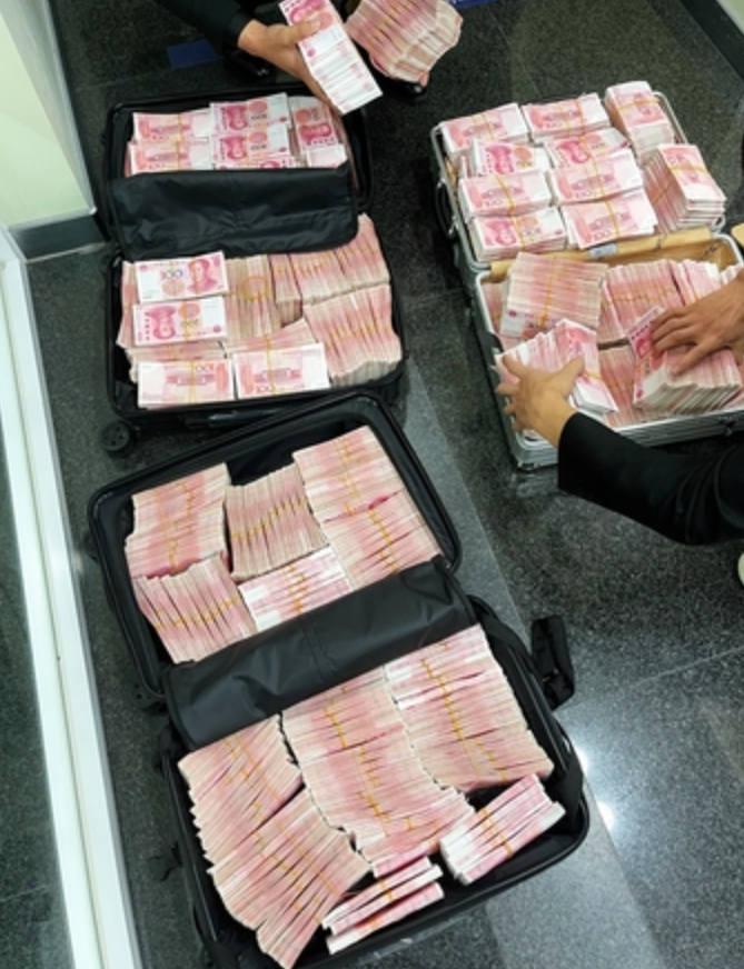続いて、「一度に全ての金額は引き出すことはできないので、今日はひとまず500万元(約9千万円)を引き出した」とし、現金を入れるキャリアパック3つの写真を共有しました。