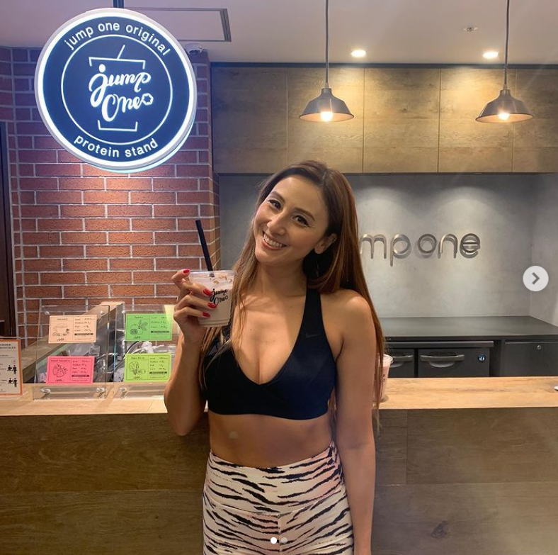 投稿された写真には、胸元が透けたセクシーなスポーツブラとスパッツを着用した道端さんの姿が映し出されています。