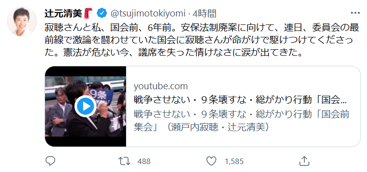 ≪辻元さんが落選したことを喜ばしく思う国民もいます≫