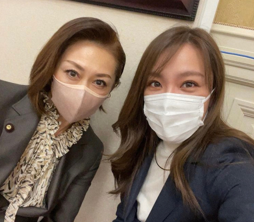 永田町の姐さんと慕っていたのは三原じゅん子議員でした!マスク姿とはいえ、お二人ともお綺麗ですね。