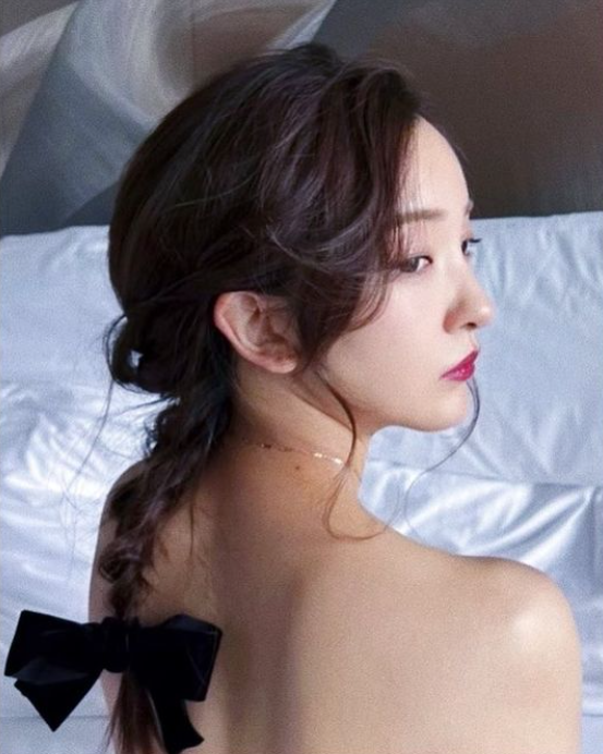 髪の毛を三つ編みにして大きな黒いリボンで結んでいる写真を投稿しておりセクシーな雰囲気。