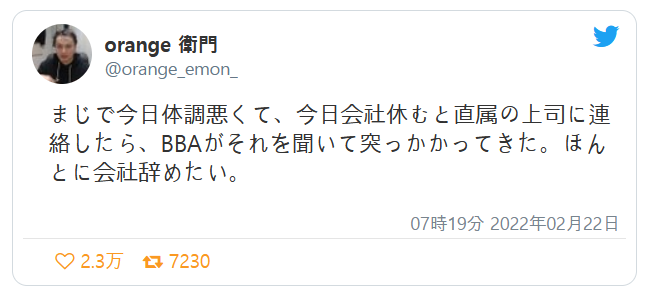 ツイ主は体調不良でこの日会社を休むことになり、直属の上司に連絡したそうです。