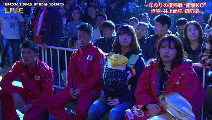 2015年12月29日に放映されたのタイトル防衛戦にで気になる人がリング脇に写っています。