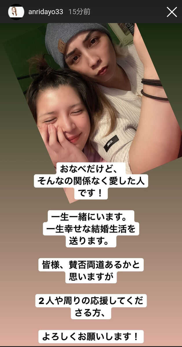 投稿では「お互い31歳にて幸せな結婚生活を、お送りして行きたい毎日です!急なお知らせで大変申し訳ないですが応援していただけたら幸いです!」と同い年での結婚だと記しました。