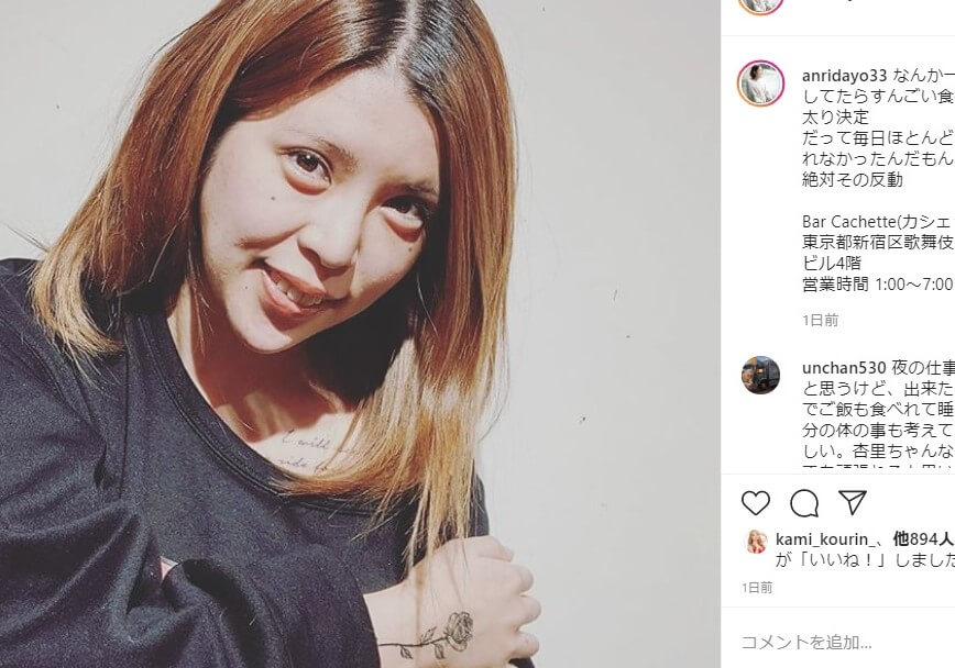 その後に別投稿で「彼は一般人のおなべです!そこに私は偏見もなくとにかく愛してくれる大切な方です!」と明らかにし、また「進一」の名前で格闘技イベント「宴」に出場しており、様々なメディアに取り上げられています。さらに「BARはいから」を経営しているそうです。