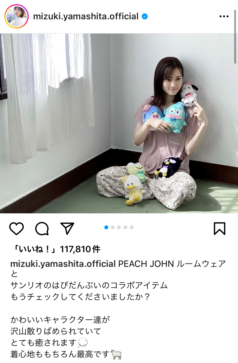 山下は「PEACH JOHNのアジア限定アイテム、とってもかわいいです」と綴り、6枚の写真をアップしました。1~3枚目はピンクのキャミソールワンピースを着用していて、透き通る白い肌がとても美しいです。4~6枚目はパジャマを着ていて、三つ編み姿がとてもかわいらしい写真です。