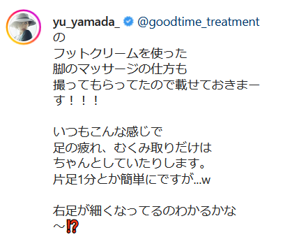 先日インスタグラムにフットクリームを使用した脚のマッサージを投稿したのですが